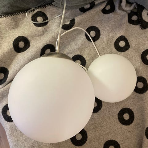 Lækkert design på flad glaspendel, ligger i orginal embalage, har aldrig været brugt.
