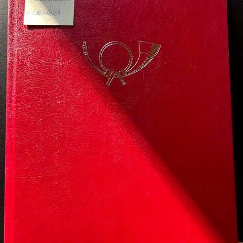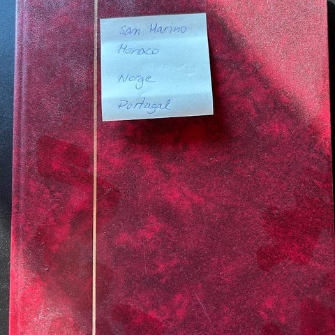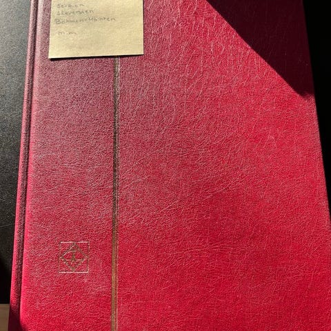 Flot rødt frimærkealbum med blandede frimærker fra Albanien og Bulgarien samlet op igennem 80´erne og 90´erne.