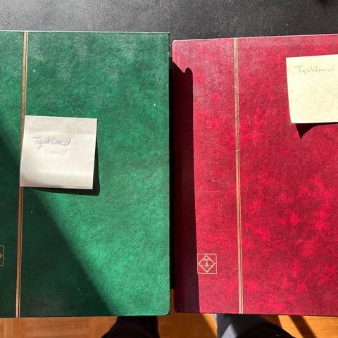 Jeg har taget et par billeder af nogen af siderne, men der er samlet 14 hele sider med frimærker