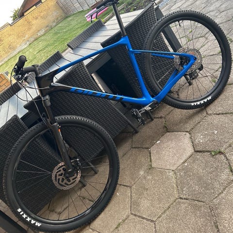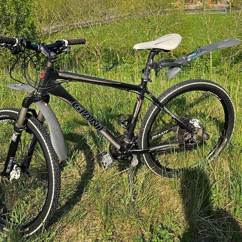 Giant mountainbike til unisex. Cyklen har en robust ramme og er designet til terræn- og offroad-kørsel. Den er udstyret med gearskifte og håndbremser, samt en komfortabel sadel og styr. Farven er lilla.