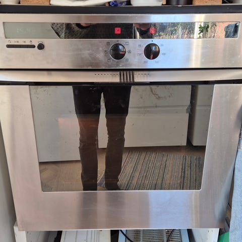 Ovnen har standard 60x60 cm. indbygningsmål. Inkl. rist, 2 bageplader og en bradepande.