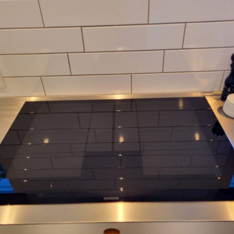 Siemens induktionskogeplade med glaskeramisk overflade. Kogepladen har flere induktionszoner og touchbetjening.