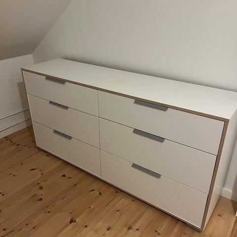 Rigtig fin kommode i god stand Ella kommoden hvid med 3 rummelige skuffer, ben og greb i egetræ