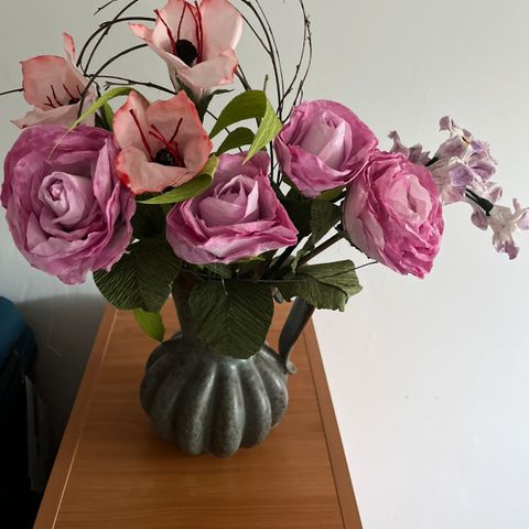 Alt hvad du skal bruge til at lave smukke blomster af papir. Vejledning medfølger. Ubrugt crepepapir, støvdragere og tape