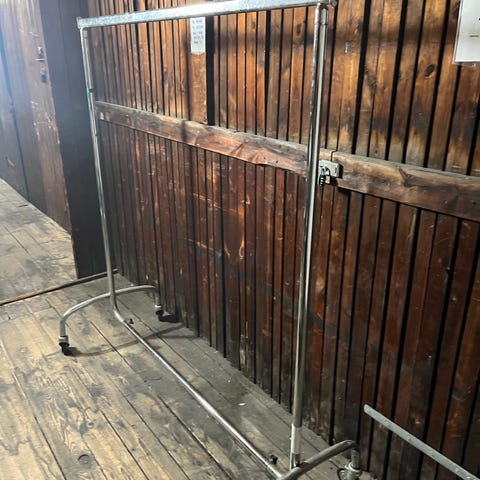Flot tøjstativ til organisering, udstilling mm, i metal med kromdetaljer og har et skostativ, der også holder stativet ekstra stabilt.