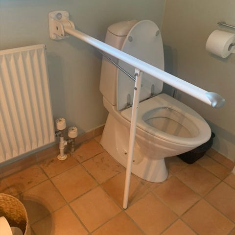 Fastmonteret toiletstøtte med ben.