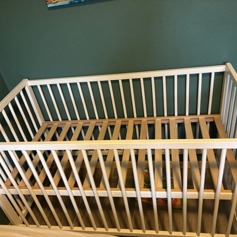 Fra fabrikken er der 8 lange skruere og 4 kortere skruer; vi har dog kun 7 af de lange. Faktisk er der ét hul, hvor lamelbunden ikke kan skrues sammen med sengestellet.