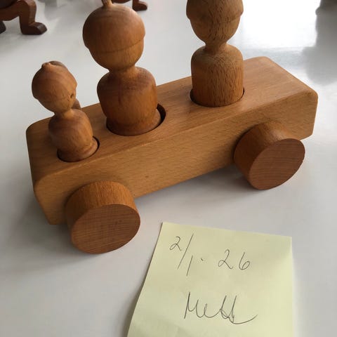 Kay Bojesen. To træfigurer iført traditionelle folkedragter.Hollands par. (Kay Bojesen er fra år 1886 - 1958) Den ene figur forestiller en kvinde med hvid kjole og rødt og blåt tøj, den anden en mand med blå bukser og rød skjorte. Figurenes farver er primært hvid, blå og rød. De er meget gamle.
