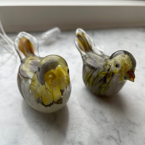 2 stk. håndlavede glasfugle – glaskunst / kunsthåndværk