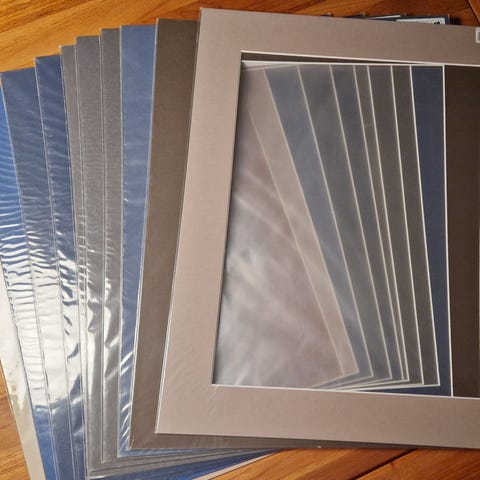 Flot paspartout b 64 cm h 86 cm i ramme i børstet stål og med glas. 90 kr.