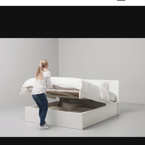 Hej jeg sælger min seng da jeg skal renoverer mit værelse og der ikke kommer til at være plads til den. Sengen er ikke gået i stykker på noget tidspunkt. Man kan sagtens åbne for opbevaringen uden problemer.