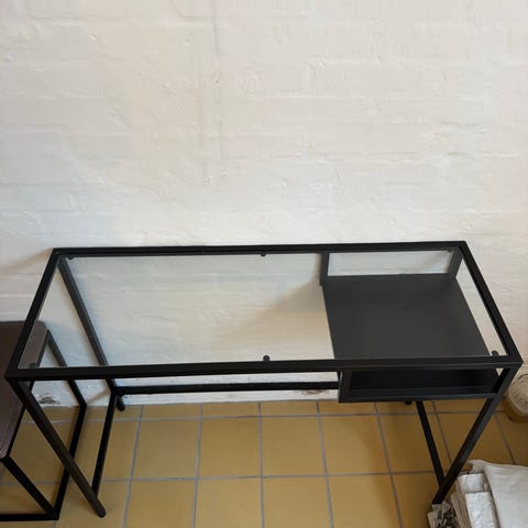 Skrivebord med hjul og glasplade. D: 80 cm, B: 150,5 cm