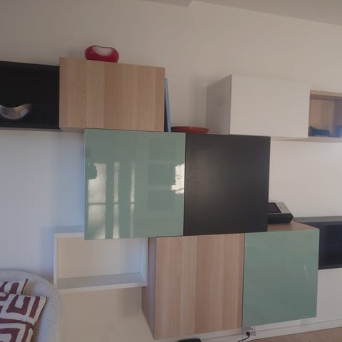 Tre moduler med seks låger i alt. Lågerne kan rykkes rundt, så det er muligt selv at konfigurere systemet. Alt er i rigtig fin stand og allerede skilt ad, så det er nemt at afhente. Hvert modul med to låger for 750 kr., alle tre moduler for 1600 kr.
