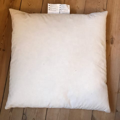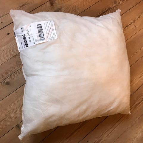 Tyk pude; fiberfyld. Brugt som dekorationspude.