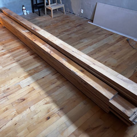 Trægulv ca. 48x48 cm der er lige knapt 50 stk.