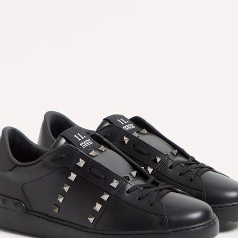 Valentino sneakers i størrelse 42 med sort og hvid farve. Skoene har snørebånd og en hvid sål med Valentino-logo på indersiden af sålen. Materialet fremstår som ruskind og læder med syninger i kontrastfarve. Designet er unisex og velegnet til daglig brug.