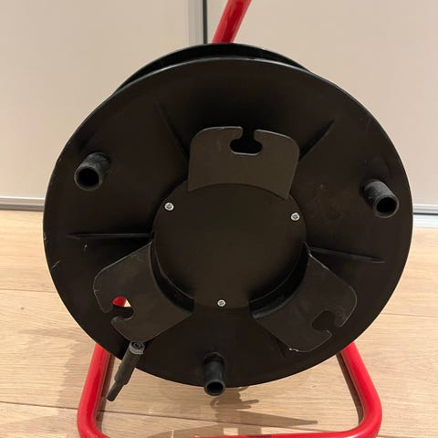 Sartano kabeltromle med 25 meters kabel og ledningstype 3 x 1,5 mm². Kabeltromlen har fire stikdåser med låg for beskyttelse.