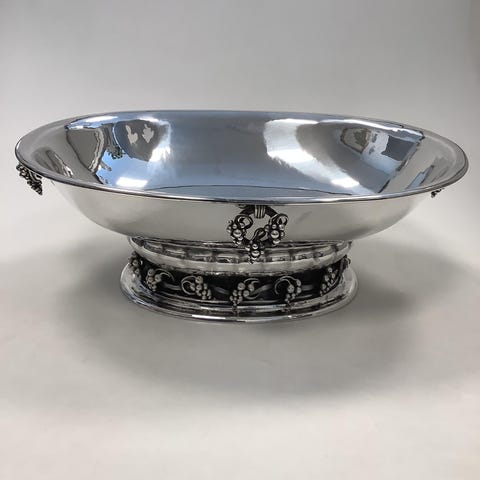 Georg Jensen. Sterling (925). STOR oval drueskål. . Design 296A. Længde 37cm. Bredde 28 cm. Højde 13,5 cm. Vægt 2380 gram.
