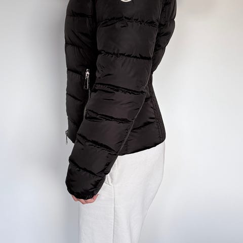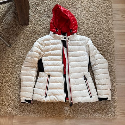 Der er brugsspor på jakkens ærmer, men ellers er skitøjet i god stand.