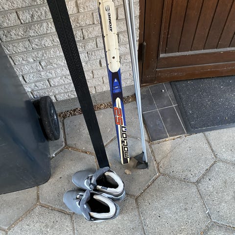 Længde 198cm med stave og støvler størrelse 46