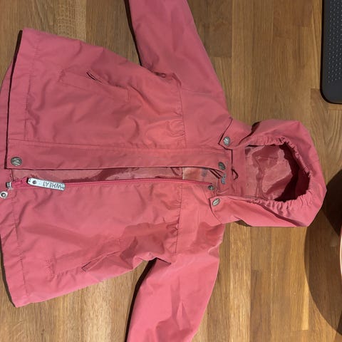 Wheat børnejakke i størrelse 128 til piger. Jakken er lyserød med et blomsterprint og lavet af polyester. Den har en hætte med pelskant og lukkes med lynlås og trykknapper. Jakken er egnet til udendørs brug og passer til børn i den angivne størrelse.