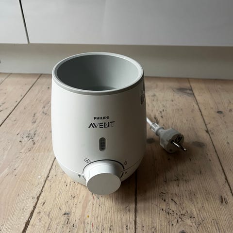 Philips Avent flaskevarmer i hvid farve. Designet til opvarmning af babyflasker. Udstyret med justerbar temperaturkontrol for præcis opvarmning.