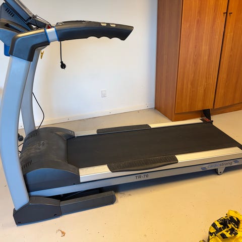 Løbebåndet har et kontrolpanel med start, stop og hastighedsjustering. Overfladen er lavet af slidstærkt materiale. Egnet til træning og konditionsforbedring i hjemmet.