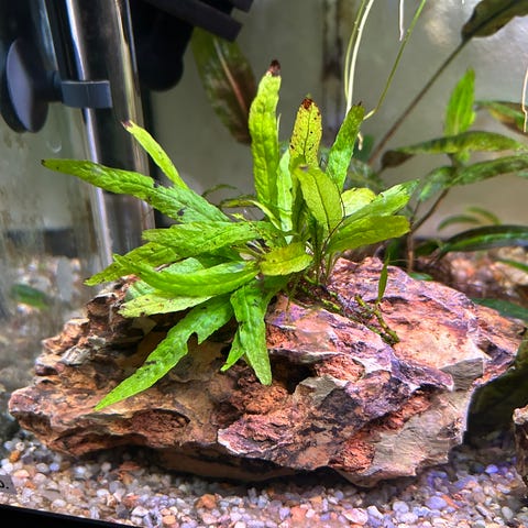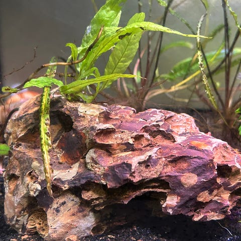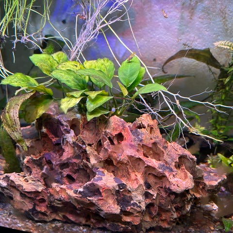 Massere af små huller og gemmesteder til mindre fisk. Har været i mit 450 liters i et par måneder, men søger nu nyt akvarie.
