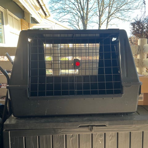 Adori Transportbox M hundebur i sort stof. Transportboksen har åbning i toppen og i siderne lavet af net for ventilation. Den er designet til transport af hunde og kan nemt foldes sammen for nem opbevaring og transport. Buret er brugt to dage. Nypris 750kr.