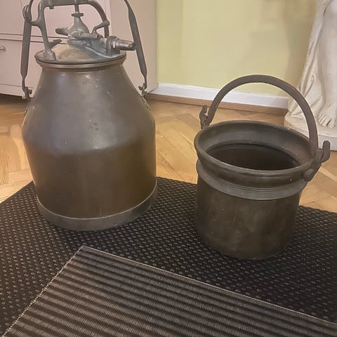 Har været pusset op. Hank og ring ved bund af jern. Højte 37 cm diameter 32 cm