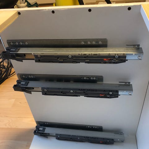 Nye BLUM MOVENTO BLUMOTION 40 kg skinner til softclose skuffe udtræk med greb (ikke push). Tysk kvalitet. Lette at justere. Skinnen er 30 cm i længden. Skruer medfølger