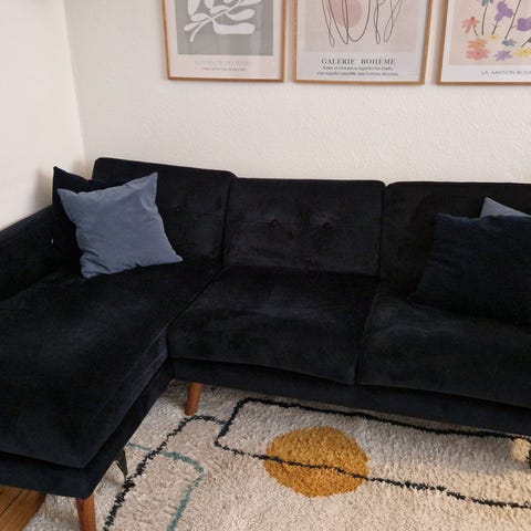 Blå veloursofa m. chaiselong fra Sofacompany sælges grundet flytning.