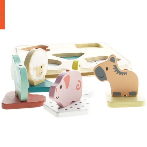velegnet til børn fra 3 år. Indeholder figurer af forskellige gårddyr som gris, får, ko og kylling, designet til leg og læring.