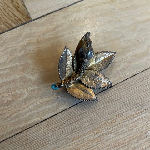 Vintage sølvbroche af Orla Eggert. Vistnok fra 1950'erne. Han har lavet en serie kaldet Flora Danica med forskellige blade, men ved ikke om den er fra denne serie.