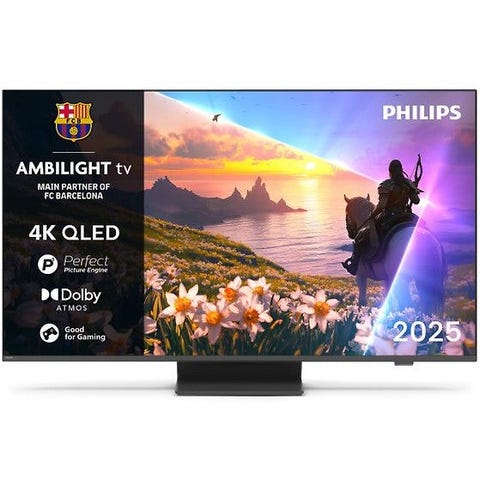 Philips' P5 picture system and 4K QLED display guarantee a sharp picture and vibrant colors. Thanks to Dolby Vision and Dolby Atmos technologies, every scene is reproduced with cinematic precision. The Ambilight feature enhances the immersive viewing experience as integrated LED lights react to the content you're watching, surrounding the television with a colorful glow.