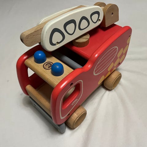 Fin brandbil fra Fætter BR. Kan blinke og afspille udrykning. Kender ikke mærket.