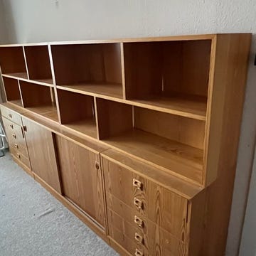 Retro bogreol i teak-finer. Har nogle ridser og pletter, men fungerer fint.