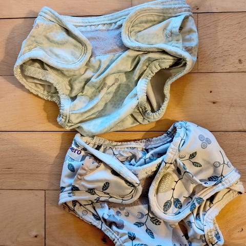 Jeg fik dem brugt, og nogle har pletter. De kan fjernes – de skal bare hænges i solen efter vask.
