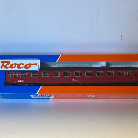 Roco 44915. DSB Bcm Personvogn i str. H0. Ca. 30,3 cm. lang. Der er tilbehør og bøjle koblinger med i poser. Flot stand.