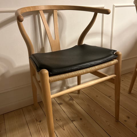 6 stk. originale Wegner Y-stole/CH24 i FLOT stand med sorte skind hynder
