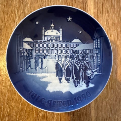 Royal Copenhagen Juleplatte 1997 og 1998 porcelæn blå/hvid
