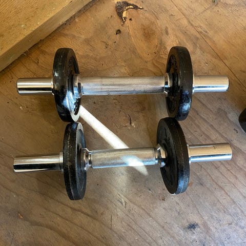 Håndvægte 2x2kg og 1x5kg og kettlebell sæt 5kg og 8kg.