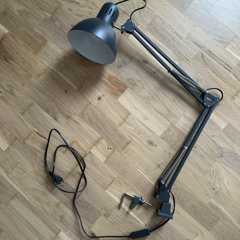 Brugt skrivebordslampe fra ikea med synlige brugsspor.
