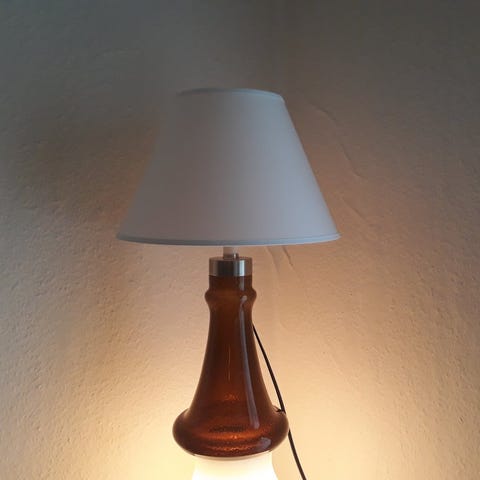Bordlampe stuelampe kontorlampe glaslampe retro murano glaspuster håndværk holmegaard holmegård dansk design danish design tablelamp vintage glaskunst dansk design designerlampe indretning bolig boligstyling boligindretning