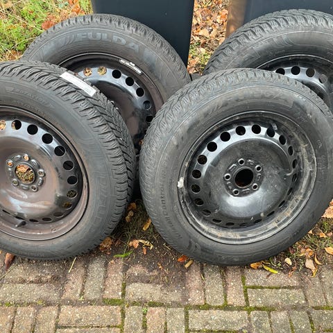 Et sæt Michelin vinterdæk med stålfælge. 16”