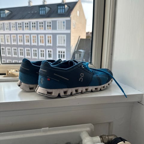 On Cloudnova løbesko/sneaker i størrelse 43. Skoene er blå med orange detaljer og aldrig brugt. Stadig i original emballage. Skoen er let og åndbar for komfort under aktivitet.