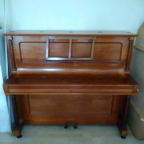 Klaver i mahogni, velholdt uden skader. Står i stueplan i ikke-ryger hjem.