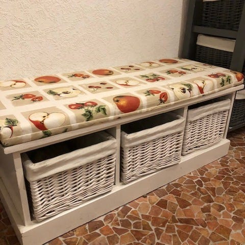 2 gedigne polstrede bænke sælges. Hvidmalet massiv træ.Den grønne måler b