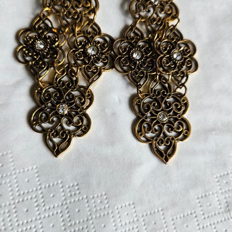Ældre hængeøreringe med sorte sten.