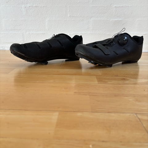 AGU cykelsko i størrelse 41, sort. Skoene har justerbare spænder og er designet til brug med klikpedaler. Købspris 950 kr. Klamper medfølger ikke. Brugt én sæson.